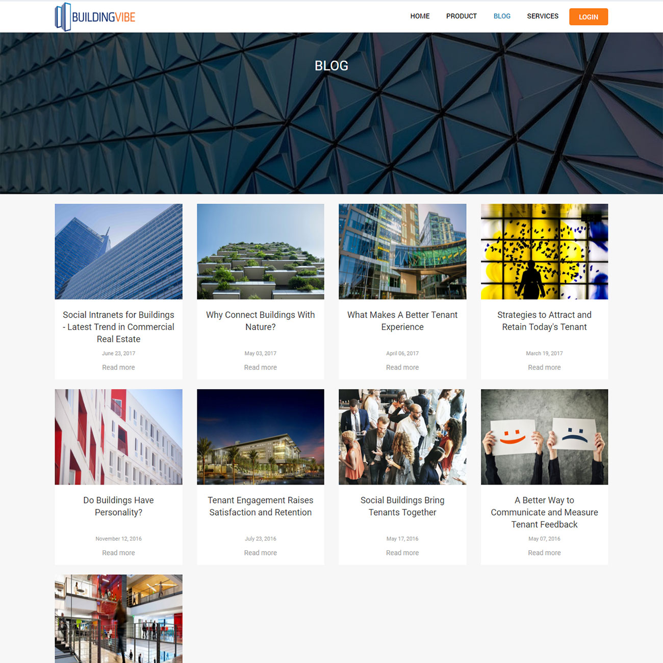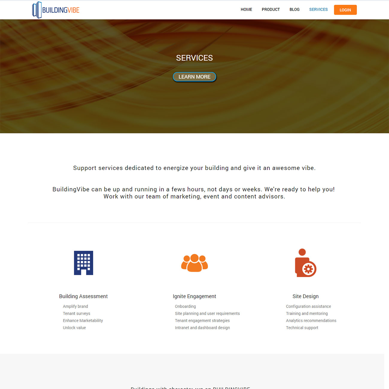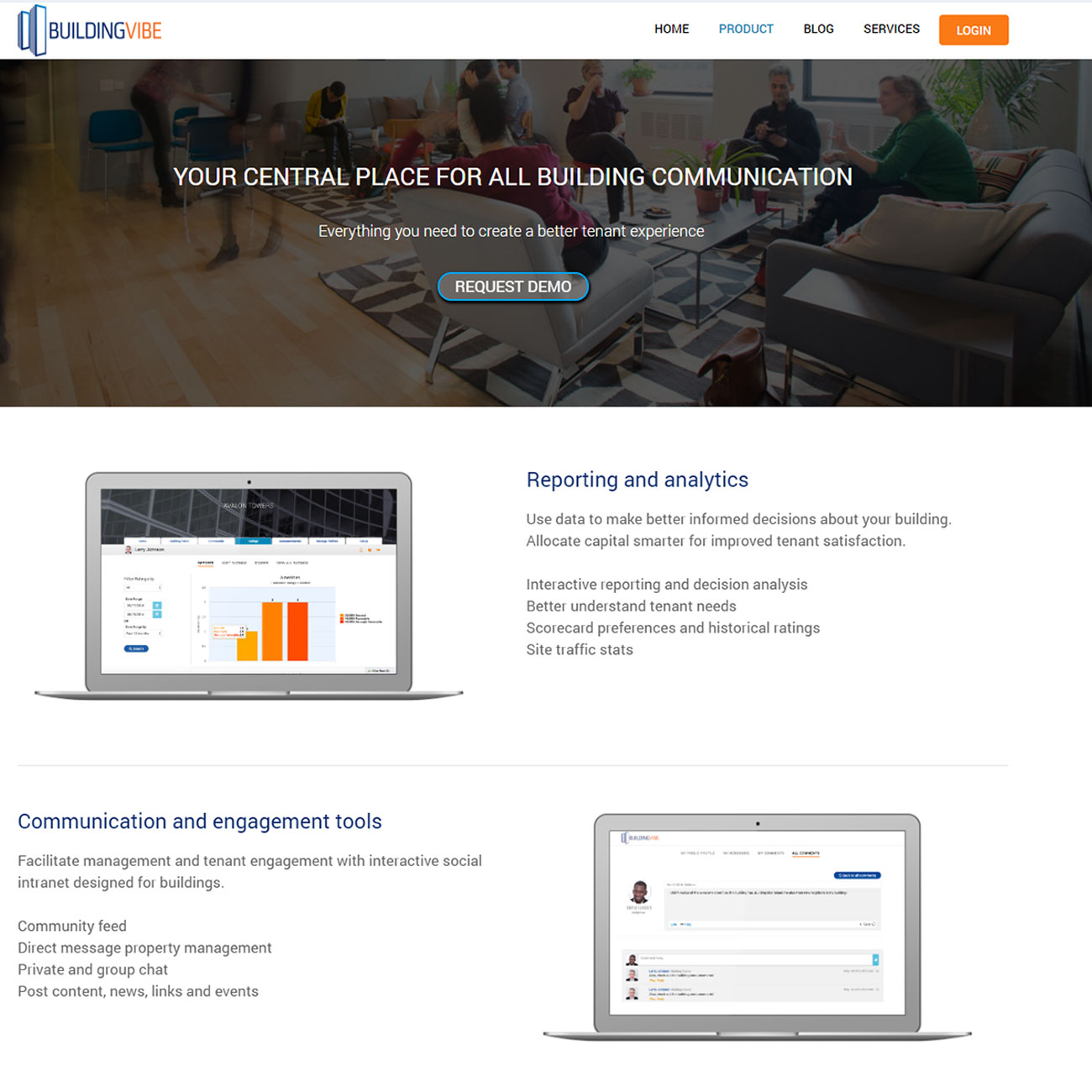 BuildingVibe is a social intranet solution and engagement platform for commercial real estate. Client want a one central hub for building owners, tenants and property managers where they can access all building communications, feedback and tenant services.